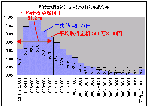 これ、2006年の世帯当たりの年収グラフです(借り物)。