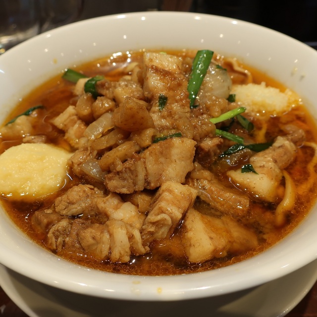 デフォルトでも具はたっぷりで豚肉はスライスとかではなくバラ肉を細切りにしており、肉肉しい食感が楽しめます。