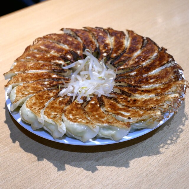 綺麗に整列された20個の餃子は芸術的で、良い感じに付いた焼き色からは美しさすら漂っていますね。