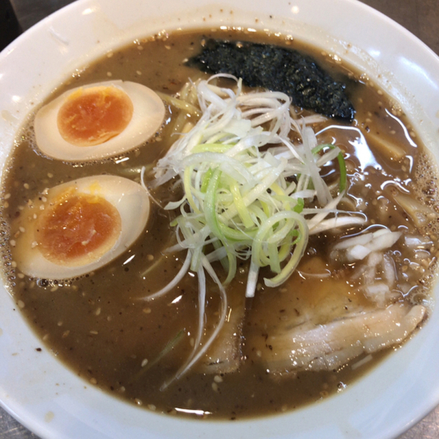 スープは濃厚な豚骨醤油系スープに煮干を効かせた独特な味わい。