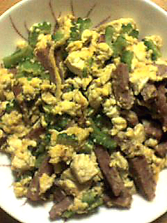 帰宅後、晩御飯作り。ゴーヤーを半分使って、ゴーヤーチャンプルを作りました☆