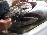 ちゃんと浮かんだべ!!!やった☆そのあと、本堂でお参りして、マグロにお賽銭して、
