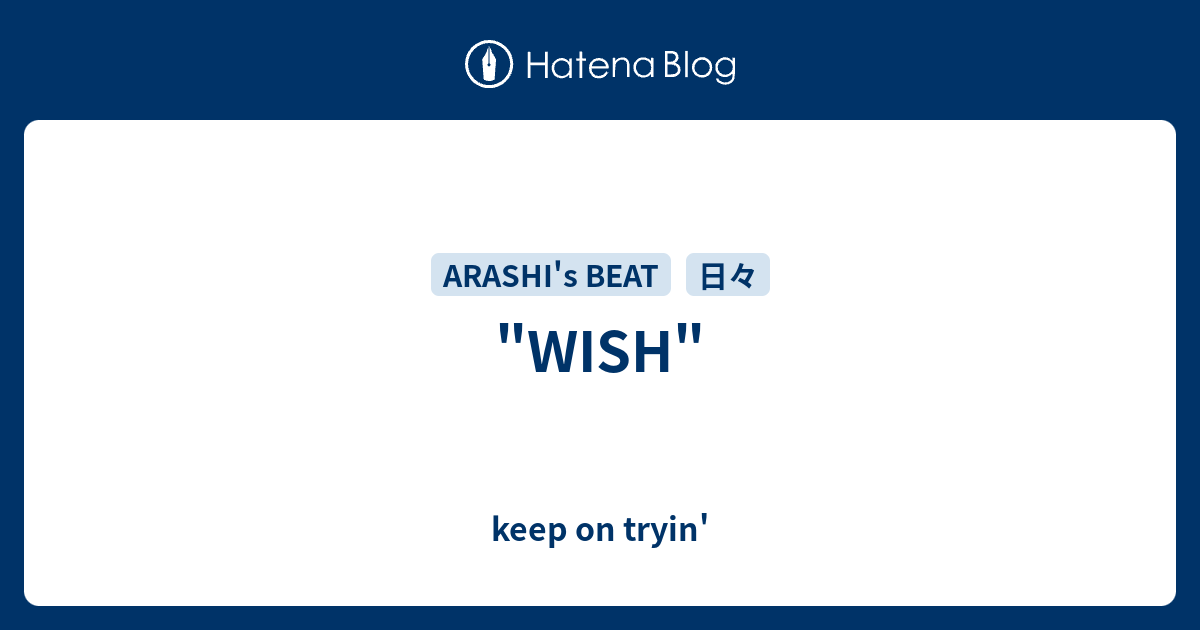 "WISH" - keep on tryin'"WISH" 嵐さん15枚目のシングル。2005年11月16日リリース。 TBS系ドラマ『花より団子』主題歌。 初回盤カップリングは "イチオクノホシ" "二人の記念日" 通常版カップリングは "イチオクノホシ" と それぞれのオリジナルカラオケ、 シークレット・トーク。 嵐さん6枚目のオリジナルアルバム "ARASHIC"(2006年7月5日リリース)他、…goofystance42.hatenablog.com