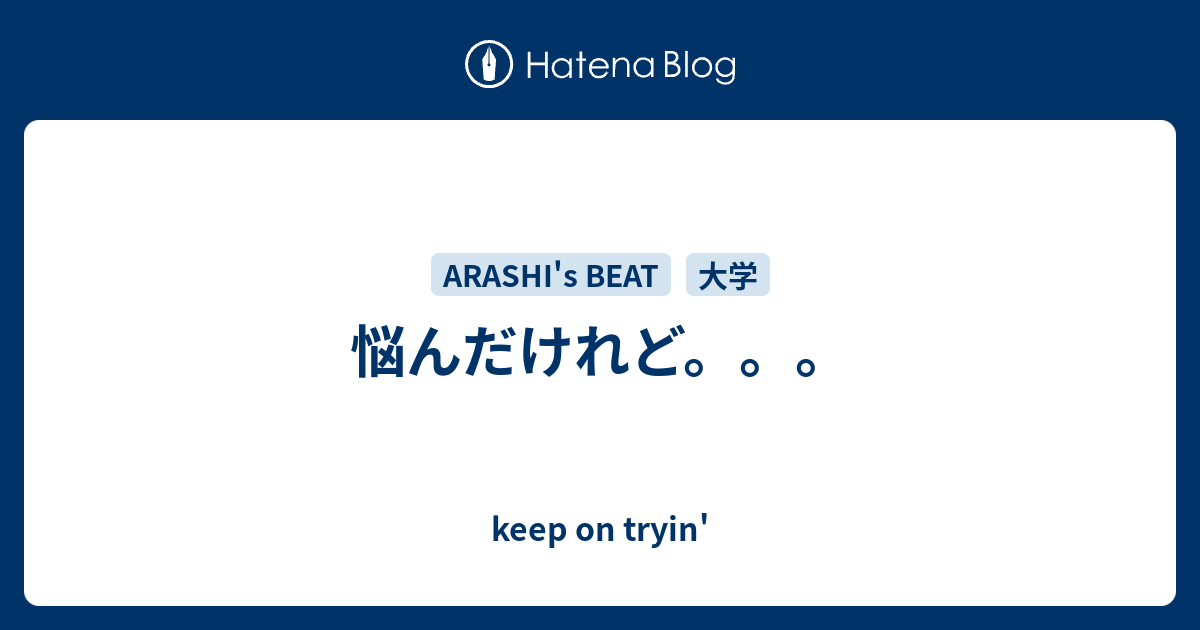 はてなブログを更新しました。 悩んだけれど。。。 - keep on tryin'毎月15日に嵐さんの楽曲を紹介していますが、 今日が卒論指導日だったため、準備ができませんでした。 今月はお休みにします。 時間があれば後日… 指導は無事終了、、、 でもなかったかも。 「あと1時間以上あるし~」と 余裕で歯磨きなどして、 ふと、 「念のためメール確認しよっか」 メールを見たら・・・・・開始まであと15分。 何をどこで勘違いしたのか、 終了時…goofystance42.hatenablog.com
