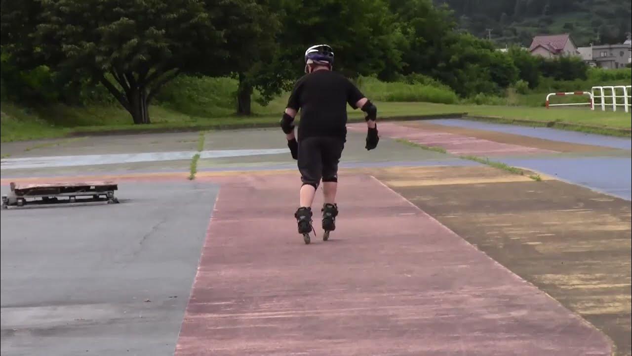 スタンスはパラレルの時もあるけど、推進力とスケートの傾きが足りません。