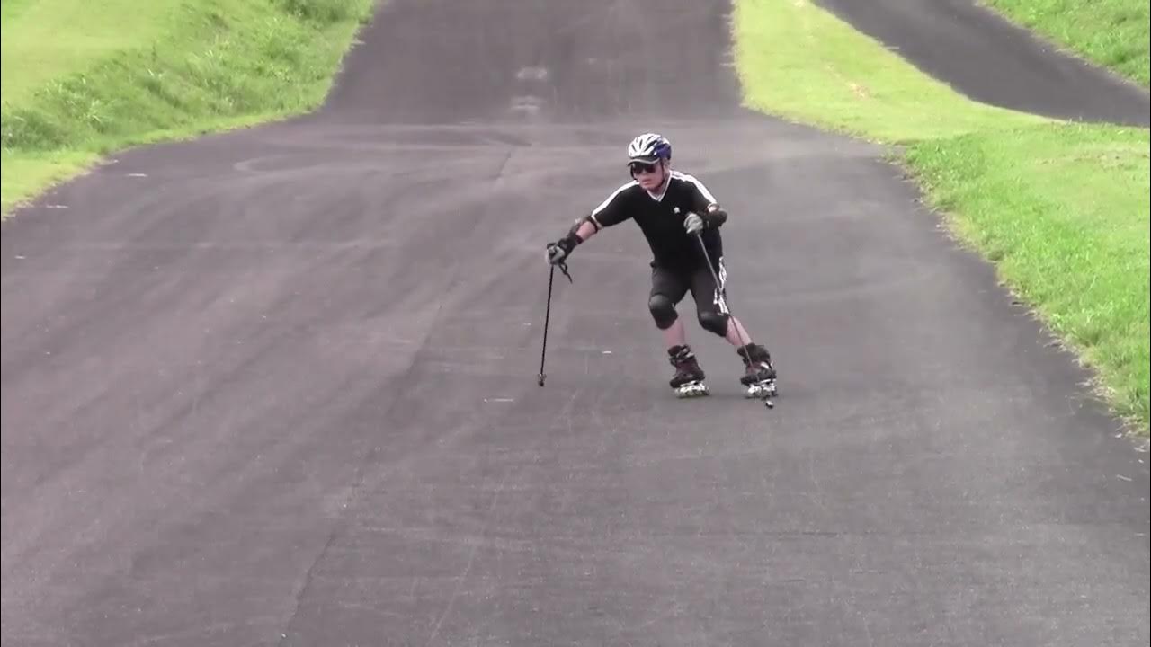 初めて夜越山のローラースキーコースの一番上から滑りました。