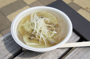 米粉で作った平べったいお餅の様な麺が、今回はカレースープに入ってました。