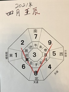 2021年4月10日現在 2021年4月 三碧 壬辰 4月9日三碧丁亥日、月と日が同じ星です。 いつも三碧年、月、日は、東方位は暗剣殺、西は五黄殺。 七赤年、月、日は、東方位は五黄殺、西は九紫暗剣殺。 四緑年、月、日は、東南三碧暗剣殺、西北は四緑暗剣殺。 六白年、月、日は、東南五黄殺、西北七赤暗剣殺。 簡単には、 今年の三碧月・日 四緑月・日 七赤月・日 六白月・日には、 緊急宣言は多い、事故、火事が多いときです。 追伸 注意時期・・・ 2021年1月、2021年10月(六白中央) 2021年3月、2021年12月(四緑中央) 2021年4月、2022年 1月(三碧中央) 2021年9月(七赤中央) 占い師:南 |