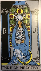 2021年7月9日現在 女教皇の胸元に見られる十字架、白い修道服など ・・・。 頭飾りは、円形の部分は太陽、両サイドの2本の角 は牝牛の角で象った「三日月」とされるものです。 衣装の裾のあたりには、三日月が描かれており・・・。 女教皇が手にする巻物は宗教の経典の基となり、 背後には垂れ幕が見え、ザクロが描かれています。 J、Bのアルファベットが記された白と黒の柱にも存 在感があります。 「白と黒」「生と死」「陰と陽」「男と女」「表と裏」など・・・。 二つの相反する対立物の象徴。 勝手な解釈: 1)若く美しい女性。 女性の神秘性が凝縮された。 誠実、気品高い、信仰心篤い、信頼できる人物。 2)衣食住に不自由がなさそうです。 3)三日月は恋愛と成長の象徴。 三日月が持つパワー、お願いするとよいでしょう。 幸運に恵まれる。物事の始まり・・・。 4)三日月はとても縁起の良い月なので、 国旗に使われたり、戦国武将が兜につけたりして います。 だから願いを叶えてくれる三日月です。 占い師:南 |