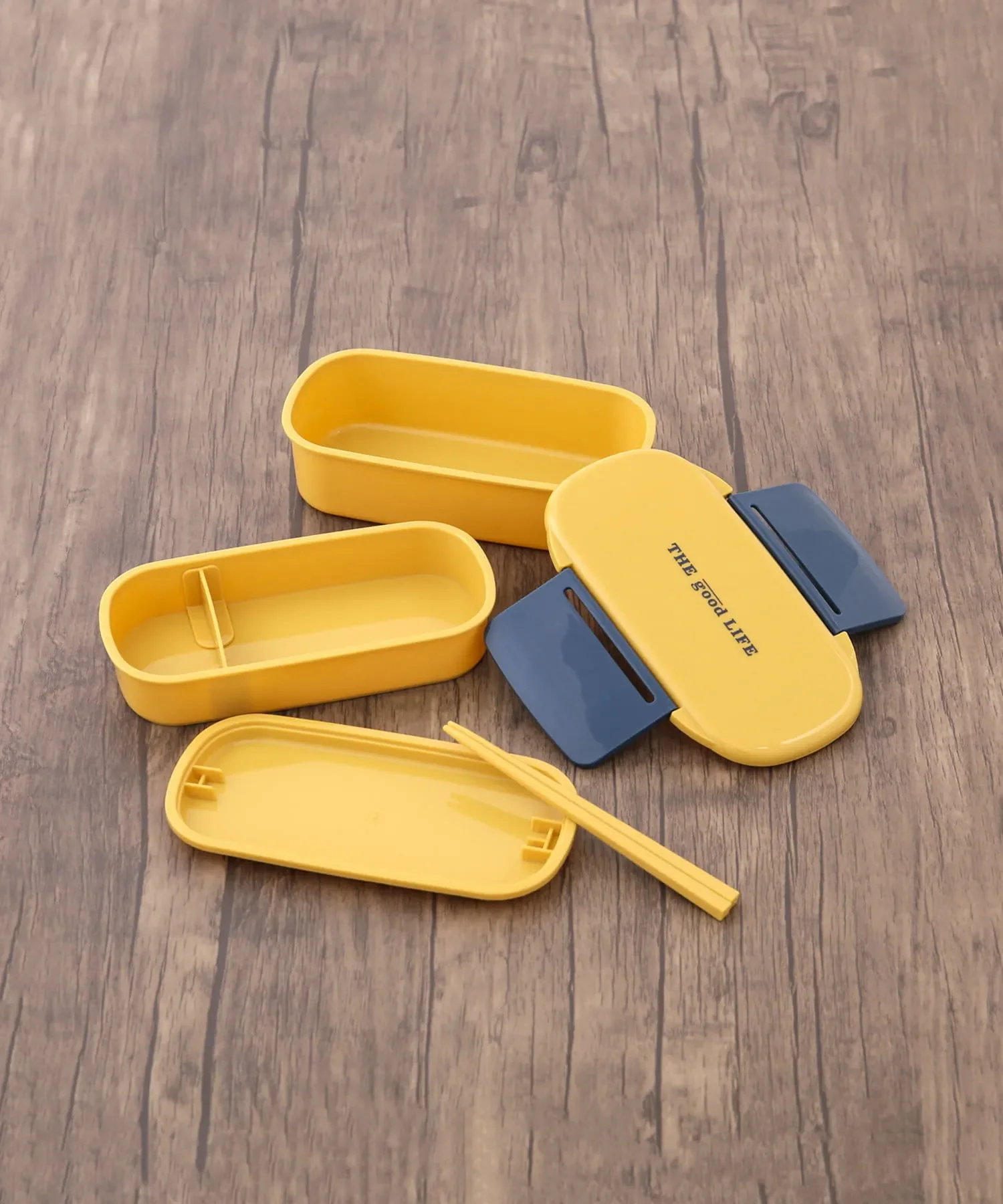 3COINS(スリーコインズ)の「箸付き2段ランチボックス」は、ご飯とおかずを分けて詰められるのが特徴のお弁当箱。