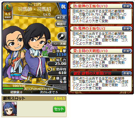 これはデュエル武将の、副将がいるラベルを表示させた画面だ