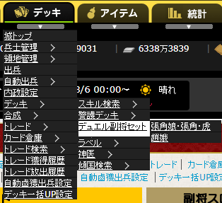 デュエル画面→その武将クリック→別窓で副将セット→その副将のラベル→選択