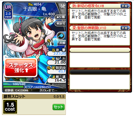 とりあえず手元に残ったUR曹操は2枚