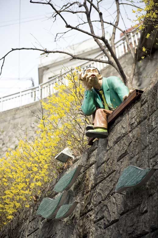 ソウルの貧民街ともいわれるこの地域は、2006年に「駱山プロジェクト」を開始して以来、街のあちこちに壁画や彫刻が設置され「芸術の路地」へと変身した。