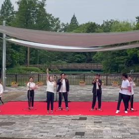 バラに囲まれて音楽ライブ(歌の動画あり)