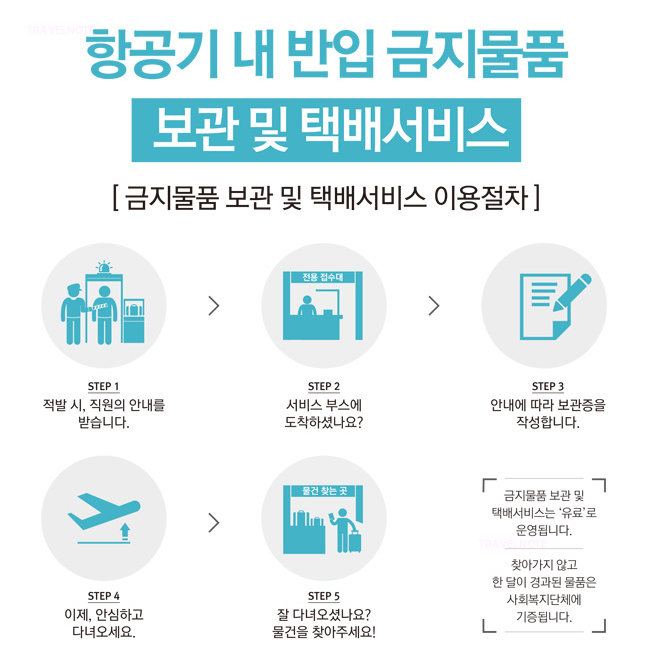 仁川国際空港が、このような事態の対処のため、出国場に「持ち物保管・宅配サービス」の窓口を設け、8月1日より運営を開始。手荷物に入った禁止物品を捨てなくても、空港にて保管、自宅まで配達できるようになりました。