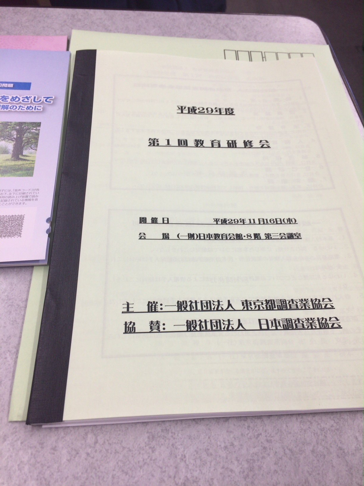 さて、昨日、都内で開催されました(一社)東京都調査業協会主催の「平成29年度 第1回教育研修会」に参加してまいりました。