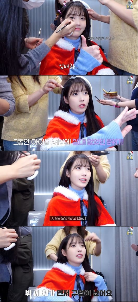 IUは12月25日、自身の公式チャンネルに「IU広告初ビハインド(に行ったが結局…)」というタイトルの映像を公開した。