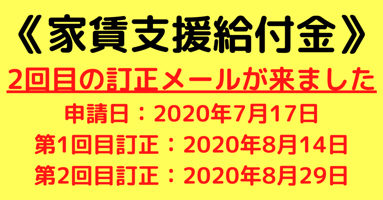 ”2回目”の《家賃支援給付金》申請の内容訂正メールが来ました