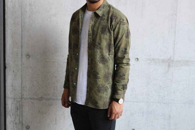 Foliageデザインにビンテージ加工が施された存在感あるコンフォートシャツ