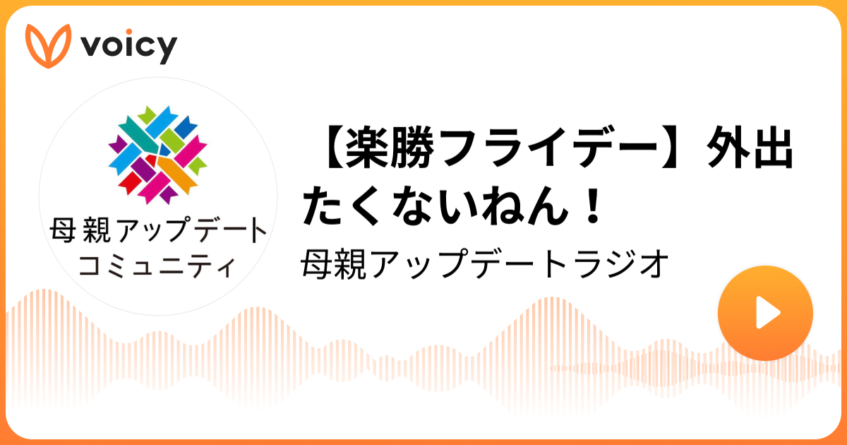 【楽勝フライデー】外出たくないねん! | 母親アップデートコミュニティ(HUC)「母親アップデートラジオ」/ Voicy - 音声プラットフォーム音声放送チャンネル「母親アップデートコミュニティ(HUC)」の「【楽勝フライデー】外出たくないねん!(2024年11月8日放送)」。Voicy - 音声プラットフォームvoicy.jp