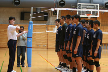 豊田合成の安原コーチがレフティのスパイカー役を務め、仮想練習でブロックを詰めたそう。