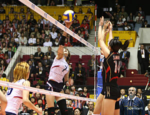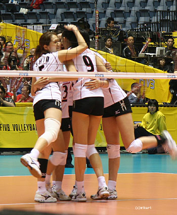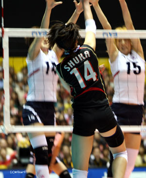 日本のスパイクには常に2枚以上ブロックがつき、シャットアウトはもちろんワンタッチを取ってディグから切り返すパターンで、「決まったと思ったのに拾われている(高橋)」というスパイカーにとってある意味シャットアウトよりもストレスのかかる展開でした。