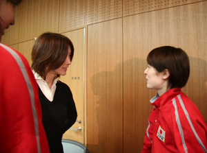 ひとしきりコメントどりがおわって、益子さんとお話してるときに、気を利かせてかおる姫に声をかけていただいて、ちょっと雑談。球萌え。の対談はものすごくせかせかした状況だったのですが、益子さんはそんな短時間の中でもかおる姫のハートをがっちりゲットしてた模様。あのときは撮影したのも私だったので、今回はSさんを呼んでしっかり撮ってもらいました。