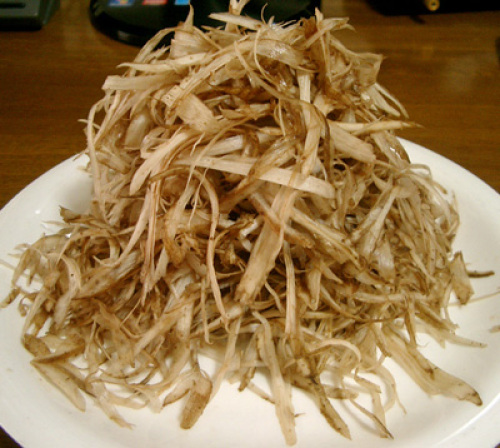 ♪ごぼう茶を作ってみるごぼうの皮に含まれる成分サポニンが良いとか、高麗人参に含まれる成分と同じだとか、 今、ごぼう茶に注目が集まっています。効能の説明はほかのサイトに譲るとして、実際に自分で作ってみることに・・。 材料:土ごぼう(青森県産 写真の分量で65円) http://image.space.rakuten.co.jp/d/strg/ctrl/2/721417183d492b63a087270877288a029b5740af.75.2.2.2.jpg?thum=53 作り方:皮の汚れをとって、アクを取らないため水にさらさない。ピーラーで薄くこそげます。 http://image.space.rakuten.co.jp/d/strg/ctrl/2/cfe51390ca03a2797dc2afd21563641fdc917245.75.2.2.2.jpg?thum=53 天日に干します。 http://image.space.rakuten.co.jp/d/strg/ctrl/2/d5ed18bc797a72b7041b8c755162e24c6233c728.75.2.2.2.jpg?thum=53 Continue