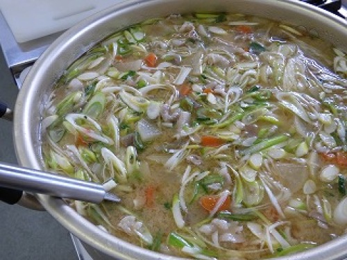 ♪豚汁の品格 たかが豚汁、さはあれど・・。 味と見栄え、いずれも料理といえる品格が欲しい、と思いながらも、 作った豚汁は大なべ2杯、50人分。 http://image.space.rakuten.co.jp/d/strg/ctrl/2/8b8402392b5a9fcc0373994e9507f6fd94420e6a.75.2.2.2.jpg?thum=53 1杯100円でふるまって。 おいしけりゃ、いいのよ・・ 悩んだのは、一振りのスパイスは、一味か、山椒か・・ということ。 結果論だけど、トッピングは白菜キムチでもよかったね。 山椒の底力をみなさんはご存じないようで。 ダシにコクと、深みを加えた貝のコハク酸は正解だった気がします。