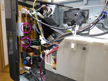 2)オーブンレンジの動作不良<電解コンデンサー>の交換