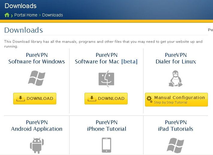 PureVPNでは簡単に操作できるようにクライアントが用意されています。オフィシャルサイトの”Download”をクリック。