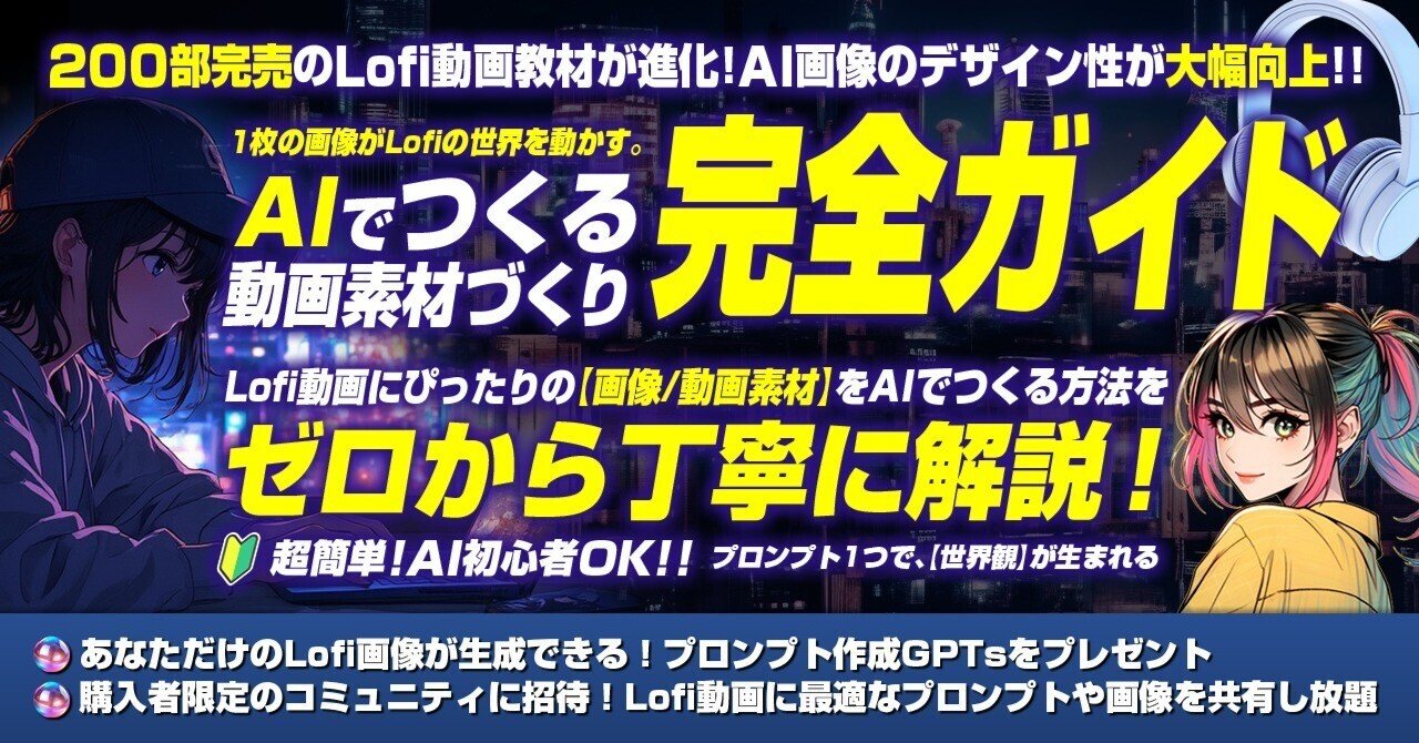 その中に、AIで音楽、画像、動画作成して、作業用BGMとして YouTubeに投稿する方法が載ってました。