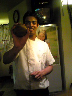 こたえこれはインドラさんにもらったココナッツ!初めて見た!チキンコルマにのせたりパウダーにしてケーキ〓にしたりココナッツミルクのドリンクだったり!ワーイもらったー!さっそく食べることに夢中のウサコでもどーやってたべるの?