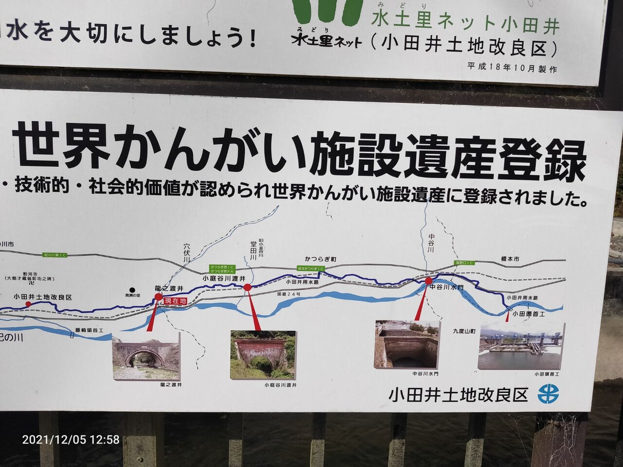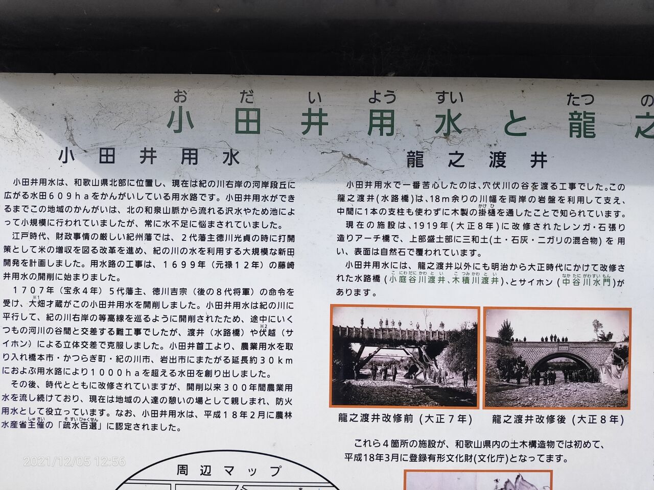 紀の川の河岸段丘の等高線をなぞる様に段丘平地を潤す水路が江戸時代に開かれた。小田井用水という。