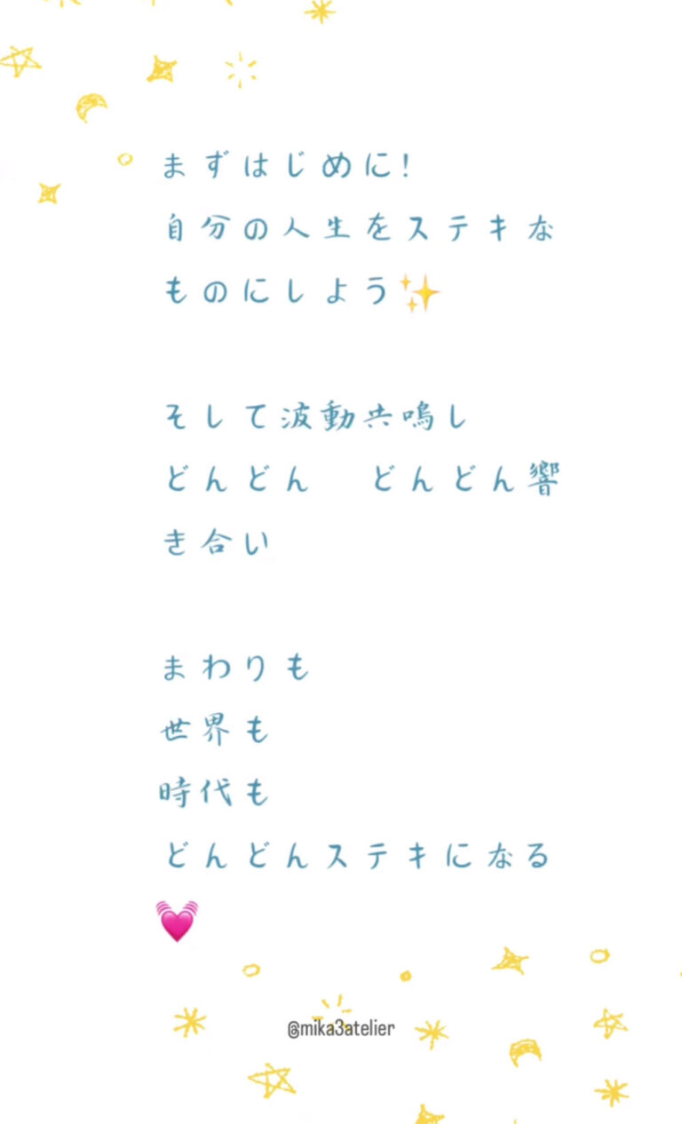 まずはじめに。まずはじめに! 自分の人生をステキなものにしよう✨ そして波動共鳴し どんどん どんどん響き合い まわりも 世界も 時代も どんどんステキになる💓 わたしたちの今日が 今が あしたの時代をつくり続けてゆく まずはわたしを。 まずはあなたを。mikaflower.com