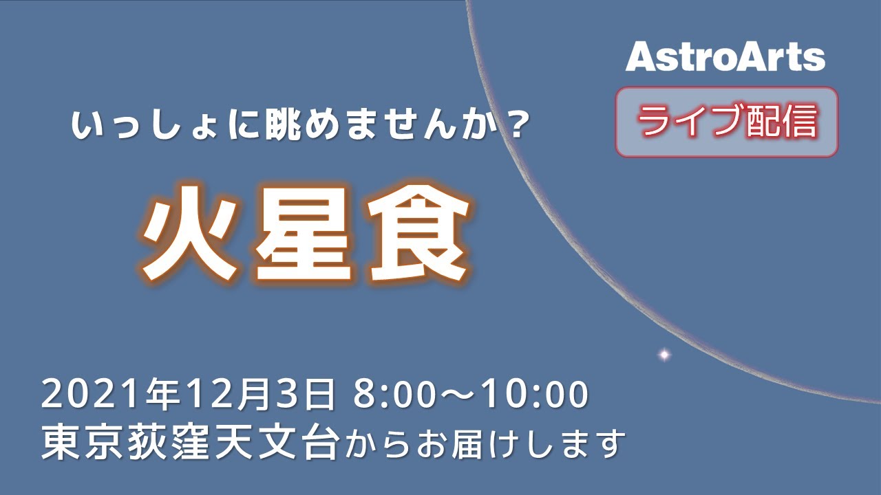 【ライブ配信】火星食(2021/12/3)いっしょに眺めませんか?株式会社アストロアーツによるライブ配信です。2021年12月3日、日の出後の8時20分ごろから9時40分ごろ、月が火星を隠す火星食が起こります。日中のため肉眼での観察は難しく、火星を捉えるには天体望遠鏡が必要です。今回は東京荻窪天文台の口径25cmの望遠鏡を使用して、火星と細い月をリアルタイム撮影。そのようすを皆...youtu.be