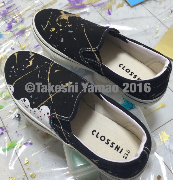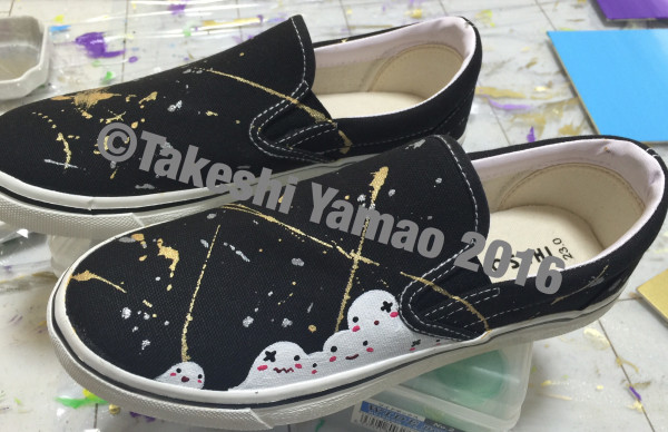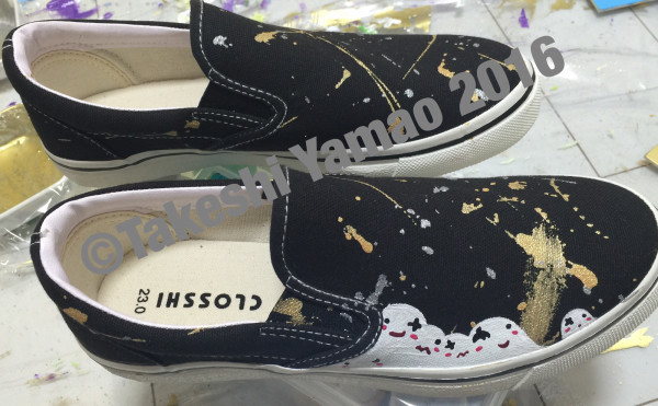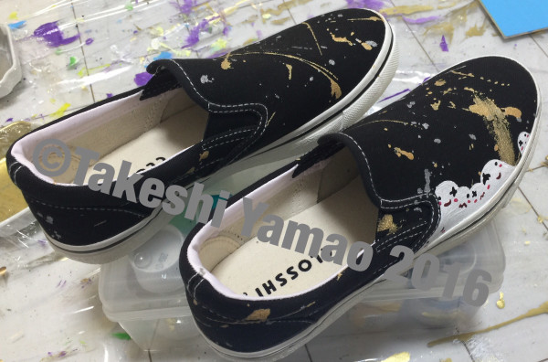 オリジナルペイントシューズ久しぶりに靴にペイントしました。金銀の散らしペイントが定番化してるような。。。ま、いっか。ペイント、色数やペイント範囲によりますが靴代別で6,000~受け付けてます。よろしくお願い申し上げます。via ヤマオタケシ's Art show Your own website,Ameba Ownd