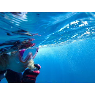 珊瑚礁が敷かれた地面に、オープンテラスのカフェ