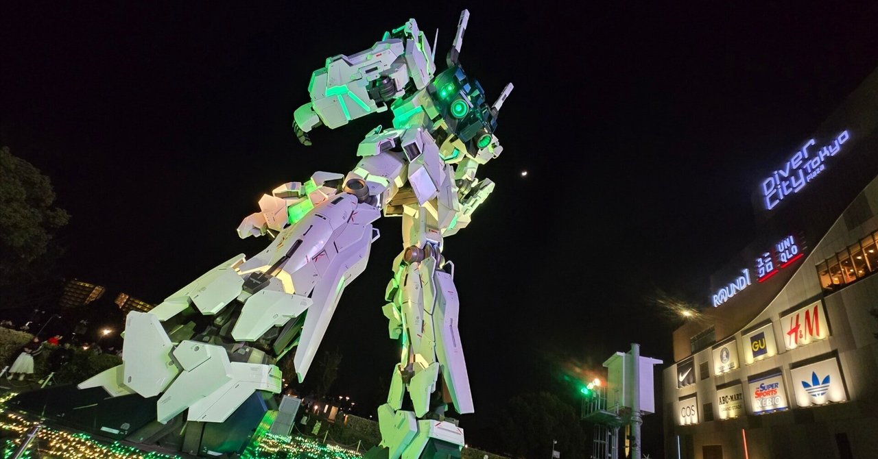 そして、お台場と言えばガンダム立像。この日は夜8時からの回を見てきました。