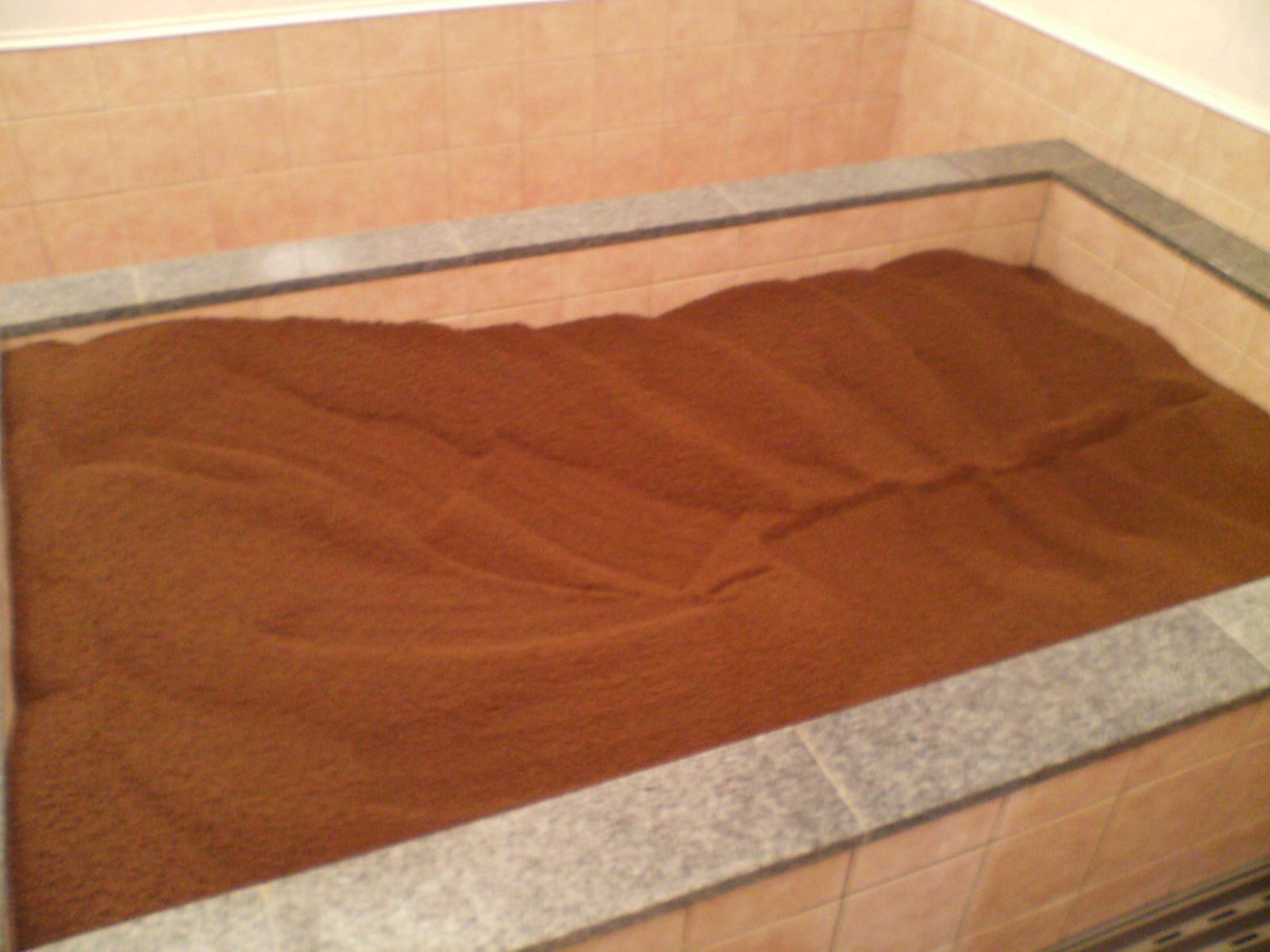 詳しくは下記WEBに譲りますが、最初半信半疑で(費用は4000円)トライしたものの1000万円!もかかるというそのお風呂施設?を目の前にし、まずはやはりそのSGE水を500ml飲み(大量に汗をかくので)いざ係りのおばちゃんの掘ってくれたスペースに体を滑り込ませ、なかなか饒舌なそのおばちゃんと話しながら15分。