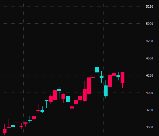 週末からの日経平均現物指数、先物の動きは以下のようでした。なかなかワイルドでした。