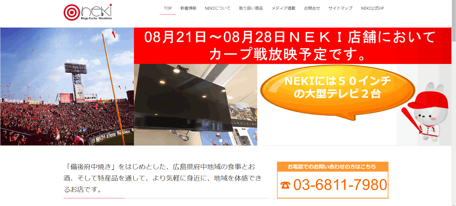 HPで関わらせて頂いております広島県府中市アンテナショップNEKI(今月OPEN)