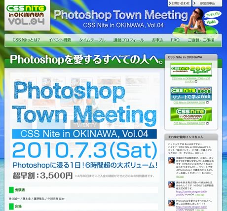 CSS Nite okinawa 2010!!CSS nite okinawa2010の参加募集が始まっています。去年も参加してなかなか楽しめたので今年も期待です!!参加申し込みしようっと!!→CSS nite okinawa2010