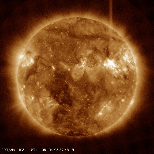 2011/ 8/ 4 13:32 昨夜にM6.0、今日の昼にM9.3と、太陽では大きな中規模フレアが続いています。