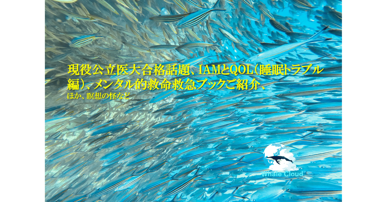 今年も!現役公立医大合格話題、IAMとQOL(睡眠トラブル編)、メンタル的救命救急ブックご紹介、ほか瞑想の怪など|Whale Cloud(クジラ雲)公安警官からIAMに転身の山本です。 今年も咲いた桜~クライアントさんご令孫の国公立医大現役合格のお知らせ 年末のご挨拶の中でも少し触れさせていただきましたが、福島県昭和村居住の夫がとてもお世話になってきた方(仮称C氏)が昨年晩秋にご逝去され、あまりに早すぎるその死と、最後にお会いした際の同人の笑顔や言葉が鮮明に思い出され、茫然自失する日々がありまし…note.com
