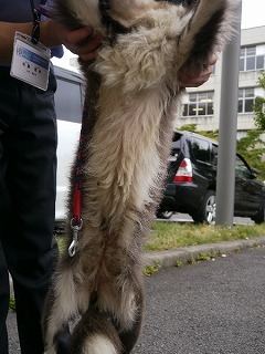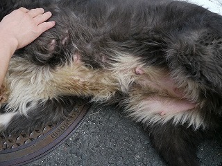 ・トリマーさん曰く《お産カット》のように短く刈り込まれたボディと陰部、尾周辺