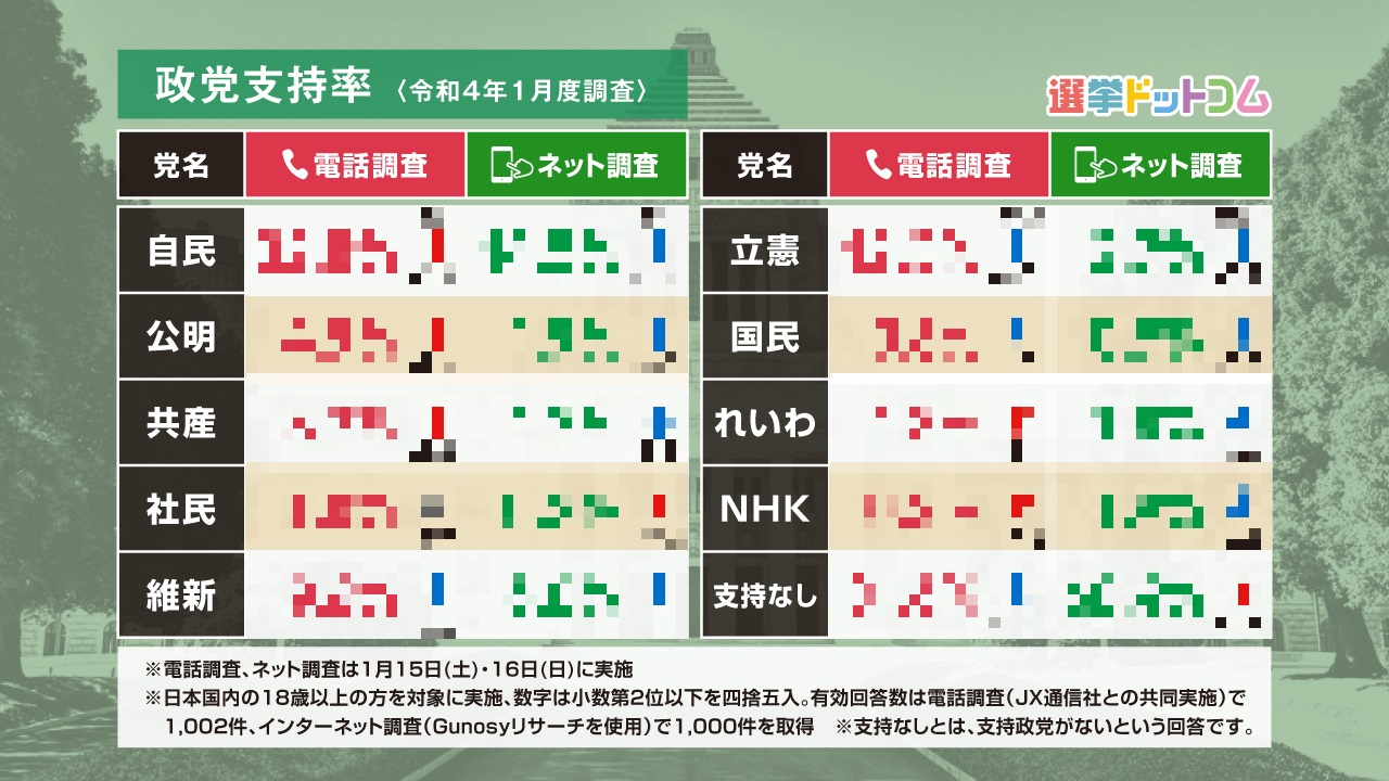 選挙ドットコムが内閣支持率や政党支持率を調査したとの事です。