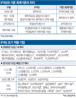 국내기업들도 발 빠르게 움직여 KT&G, 풀무원홀딩스, 이건산업 등 14개 기업은 지난해 조기도입했다. 올해부터 LG그룹계열 10개사 등 27개사가 IFRS에 따른 재무제표를 만든다.