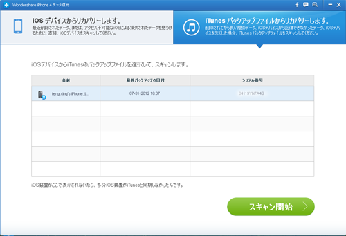 iTunesバックアップファイルより、iPhone5/4S/4/3GS、New iPad、iPad2/1、iPod Touchなど各iOSデバイスのデータを復元することもできます。